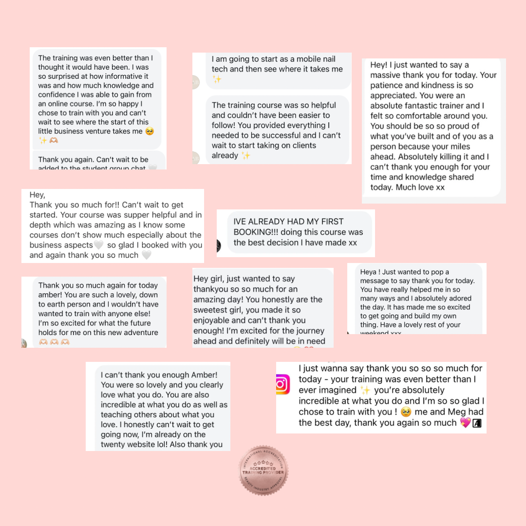 What will you learn on the everything builder gel course- I have designed this course over the past year to create the most in depth and thorough training course for complete beginners. You are going to leave feeling confident and ready to take on clients as soon as you leave our training day! You will be given on going support after your training day.